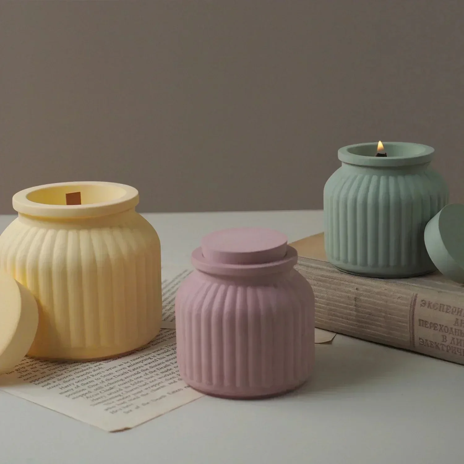 Round Candle Jar Mold with Lid Concrete Candle Vessel Silicone Mould Cement Plaster Resin Flowerpot Storage Box Craft Molds Tool