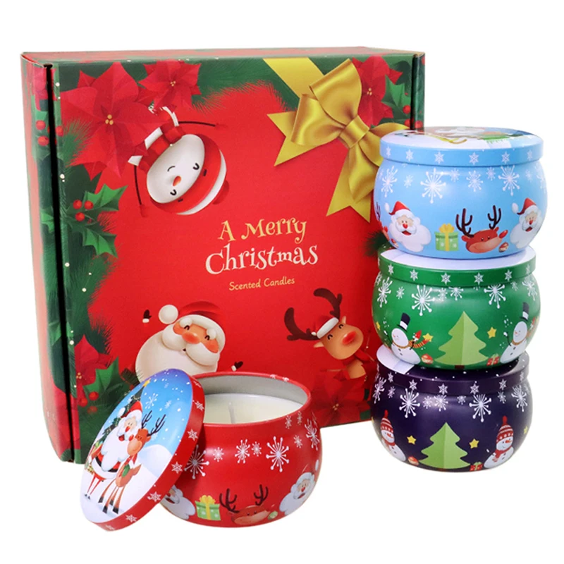 1PCS Portable Travel Christmas Aromatherapy Candle Jar Christmas Scented Candle Jar Portable Travel Wax Plant Candle Gift Box