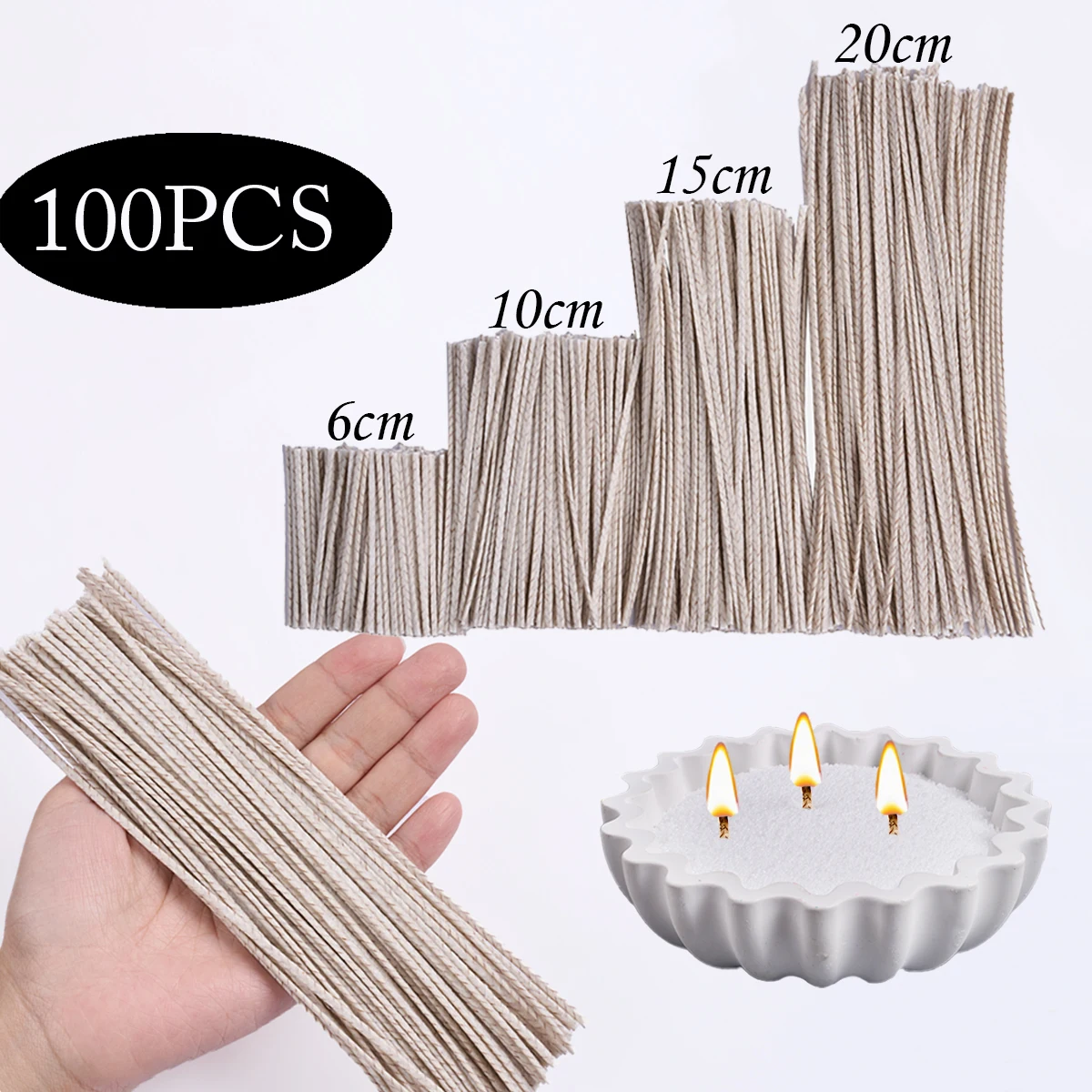100Pcs 6/10/15/20Cm Waxed Cotton Candle Wicks Smokeless Wax Core DIY Soybean Wax Core Woven Kerosene Lamp Candle Making Supplies