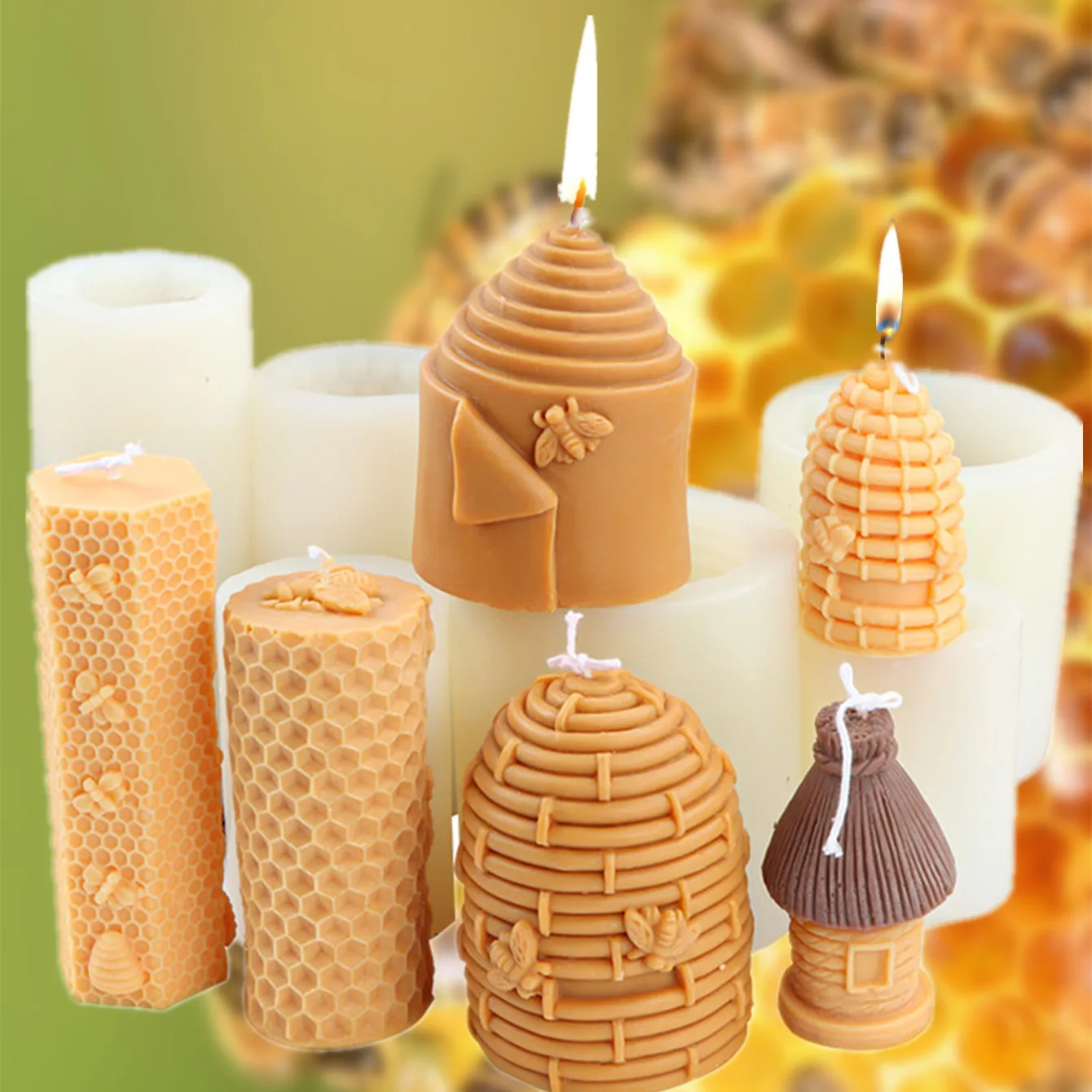 3D Bee Honeycomb Candle Molds Beehive Silicone Mold for Homemade Beeswax Candle Soap Hand Lotion Bars Crayon Wax Melt Hives