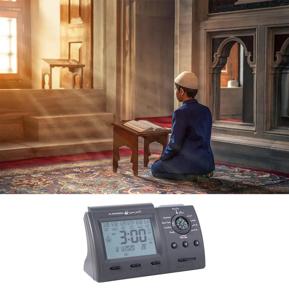 Multi-purpose Muslim Table Clock Easy Setting Hijir Calendar Automatic Digital Clock Temp Display with Qiblah Direction