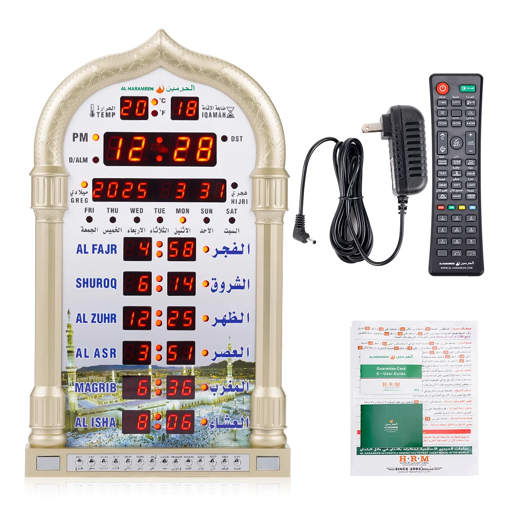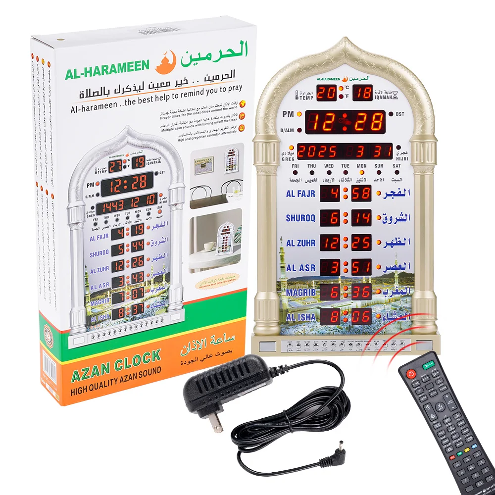 12V Azan Mosque Calendar Muslim Prayer Wall Clock with Remote Control Islamic Ramadan Home Decor Clock