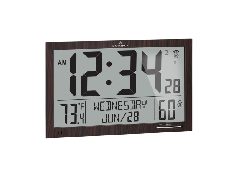 Marathon Slim Jumbo Atomic Digital Wall Clock Wood 14.6in x 1.2in x 9in CL030062-WD-FD-NA