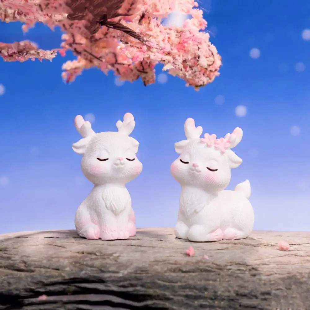 Decorative Mini Pink Deer Statue Resin Cute Fruit Baskets Statue Pink Deer Miniatures Pink Deer Doll Fairy Garden