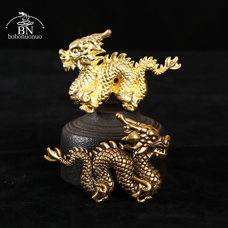 Pure Brass Zodiac Dragon Ornaments Figurines Miniatures Lucky Beast 3D Statue Desktop Decorations Crafts Accessories Home Decors