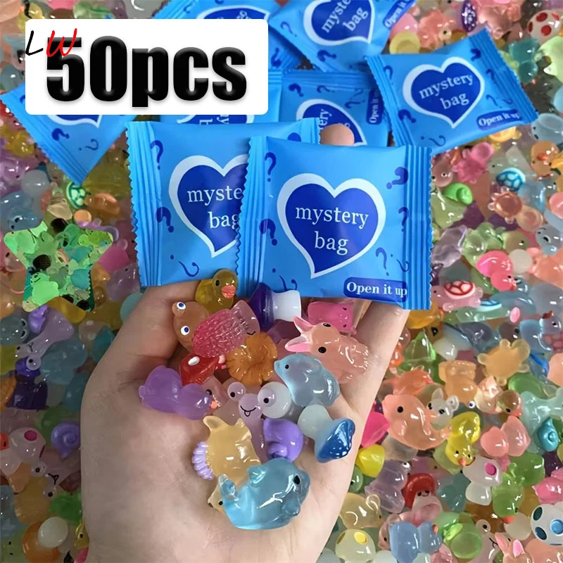 25/50pcs Surprise Blind Bags Luminous Animal Mushroom Figurines Miniature Mystery Bag For Potted Dollhouse Fairy Garden Decor