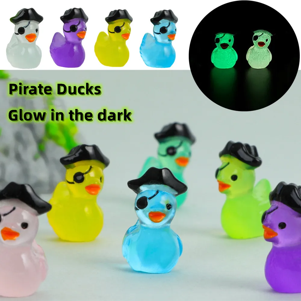 50/100PCS Luminous Pirate Ducks Fairy Garden Miniature Mini Duck Car Decorative Figurines Home Decor Game DIY Accessories 8 Type