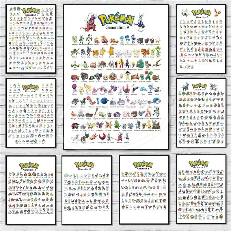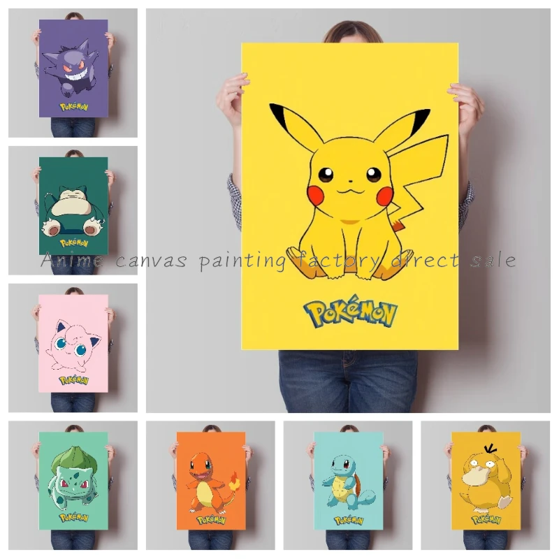 Japanese Anime Peripheral Pokemon Poster Decor Pikachu Charizard Blastoise Wall Art Canvas Painting Modern Room Decorate Picture