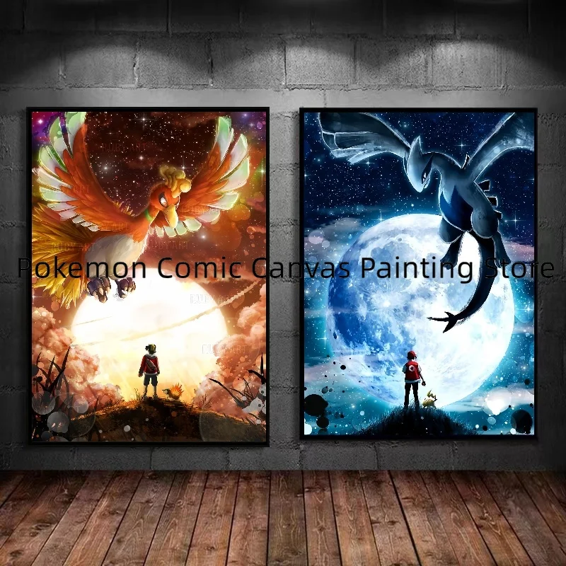 Pokemon Classic Cartoon Anime Lugia Ho-Oh Poster Action Figures Canvas Painting Wall Decoration HD Poster Kids Room Art Decorate