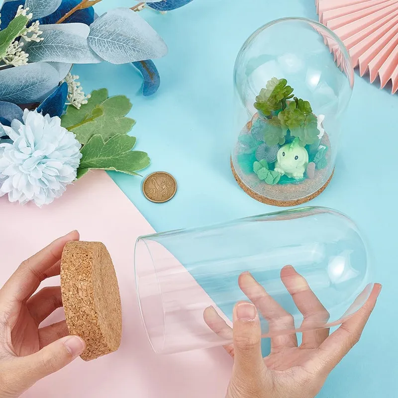 50pcs Dia 8cm Modern Handcraft Glass Dome Cover Dry Flower Vase With Wood Cork Base Landcrape Figurines Model Display Artwork