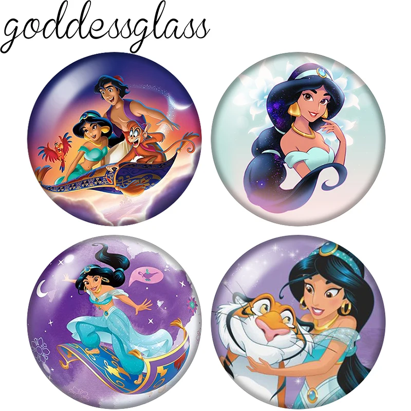 Disney Aladdin and the magic lamp Princess jasmine 12mm/18mm/20mm Round glass cabochon flat back Making findings for bracelets
