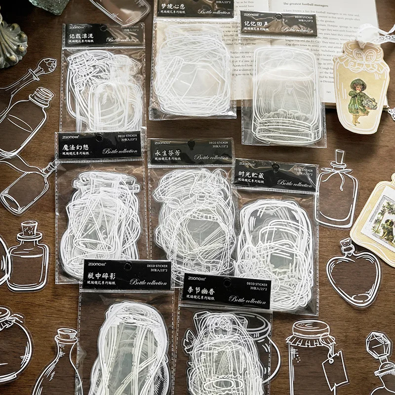 30 pcs Clear glass bottle PET Sticker Decorative collage Scrapbooking Diary Album Stationery Adhesive Labels Stickers