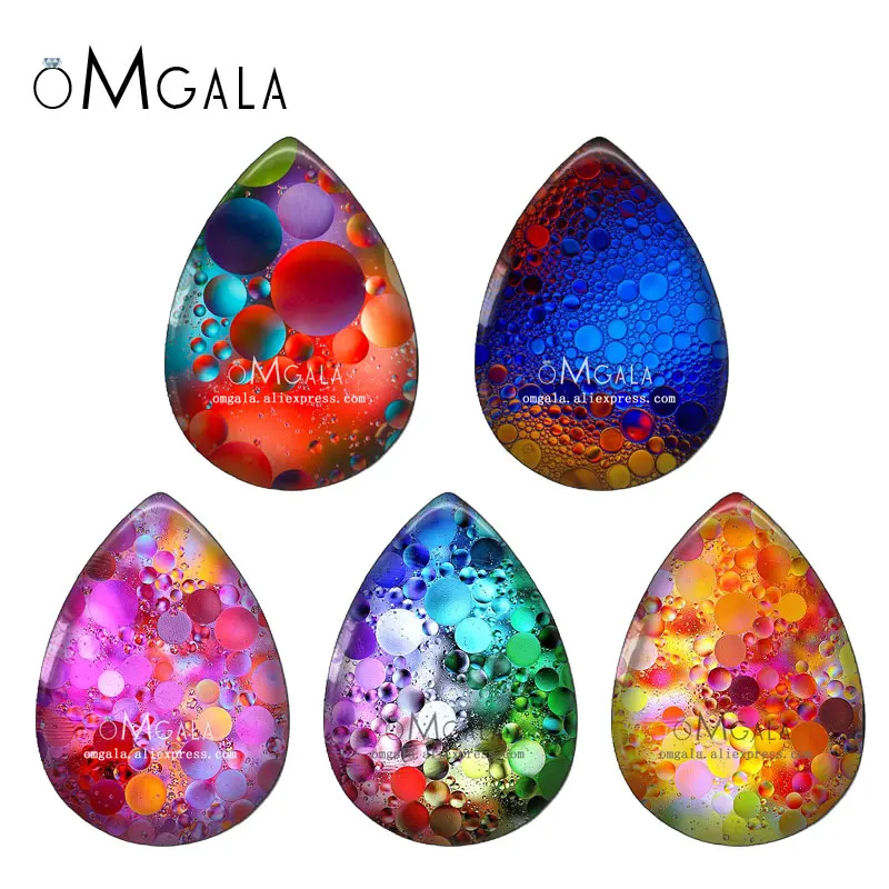 Colorful Water droplet bubble art patterns 13x18/18x25mm Photo Glass Cabochon Flat Back For DIY Jewelry Making Findings