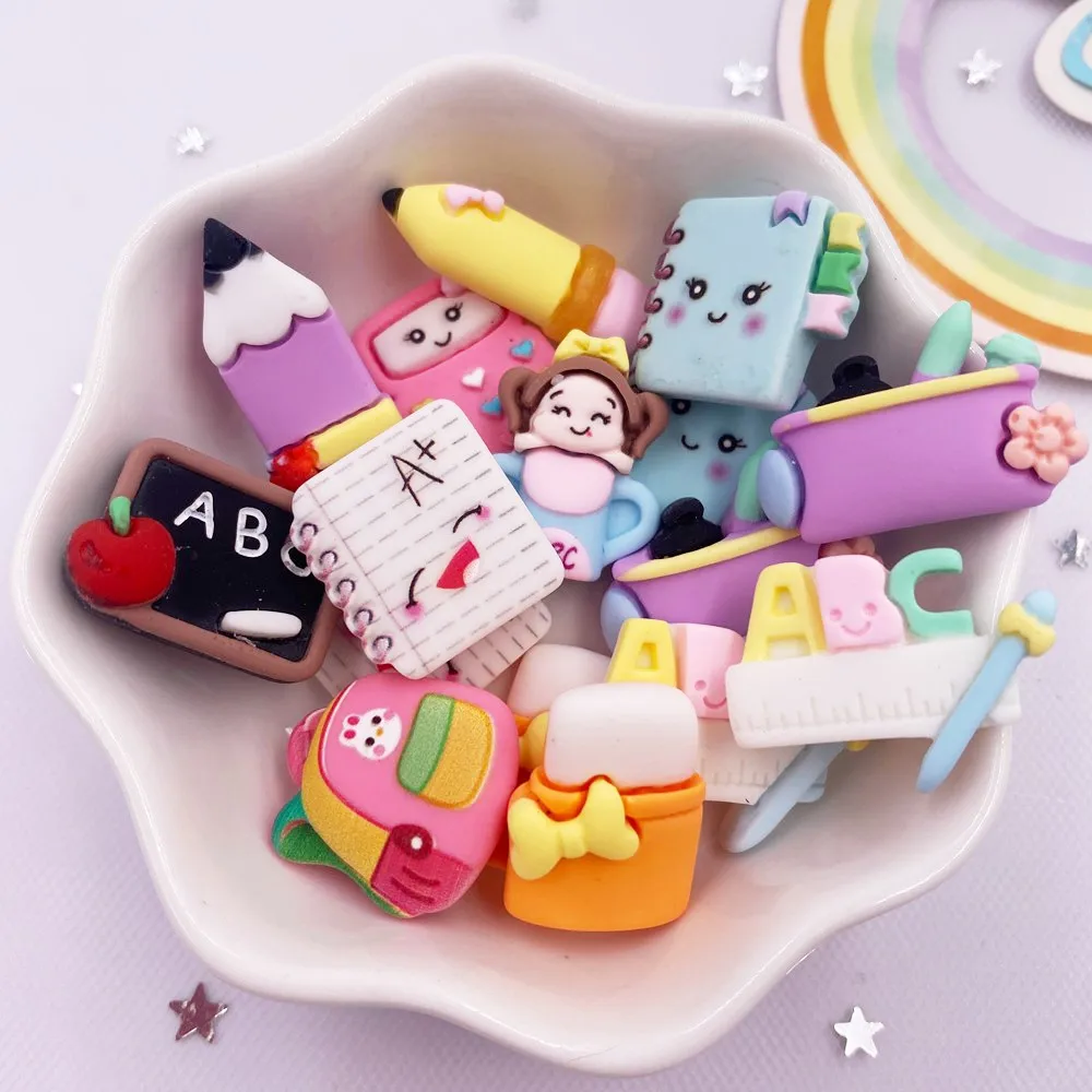 Hand Painted Resin Kawaii Colorful Mini Learning Tools Scrapbook Flatback Stone Figurine 10PCS DIY Decor Accessories Craft OM279