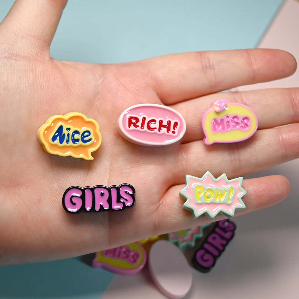10PCS Shiny Bubble English Sign Miniature Resin Flat Back Cabochons For Hairpin Scrapbooking DIY Home Decor Craft Accessories
