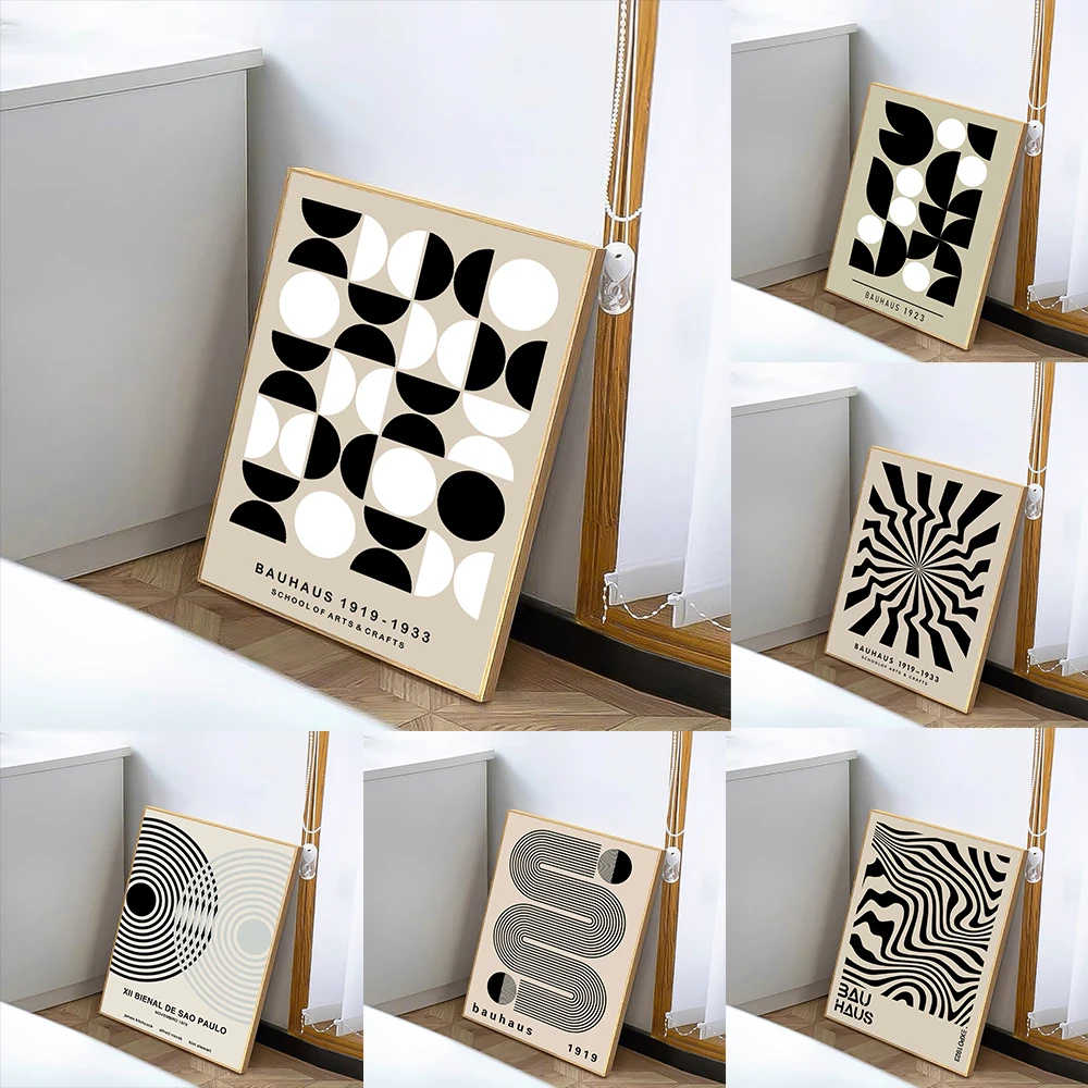Black and White Bauhaus Poster Mid Century Wall Art Canvas Painting HD Prints Pictures for Living Room Home Decor Unframed