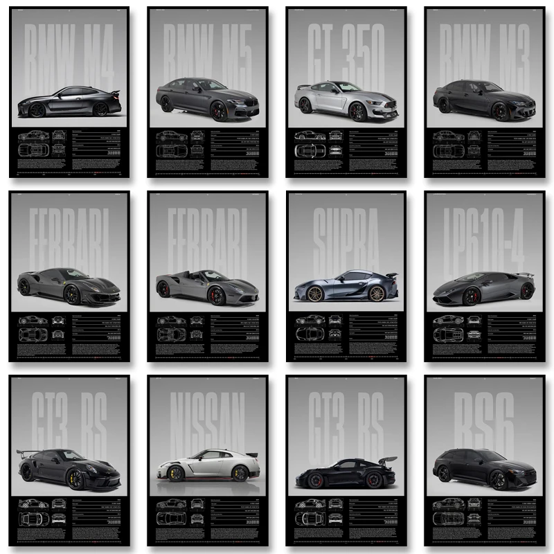 Black & White Famous Cars Posters Classic Car Photography Print Man Cave Canvas Painting Wall Art Pictures for Home Decoration