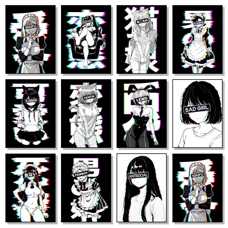 Black and White Anime Girl Sexy Figure Waifu Material Posters and Prints Canvas Painting Wall Art Picture for Bedroom Home Decor