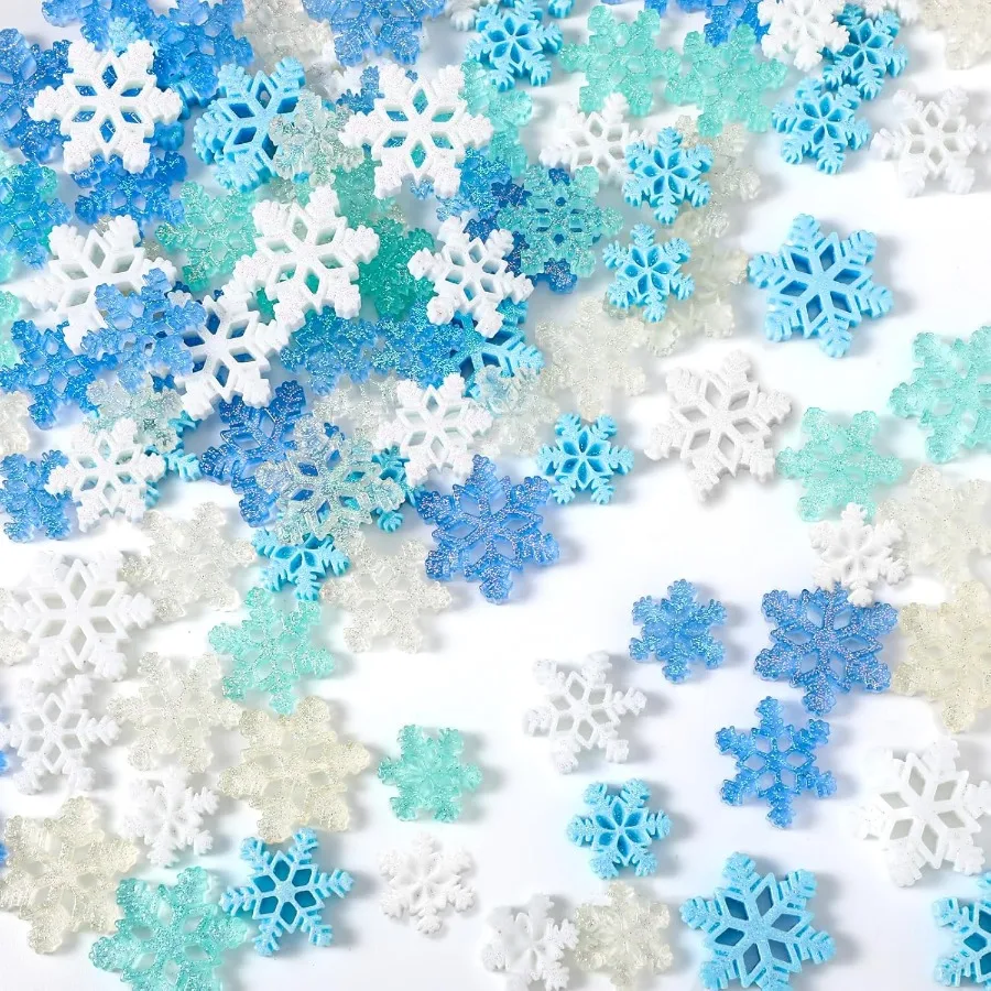 Thyle 250 Pcs Mini Blue Christmas Decor Christmas Craft Snowflakes Ornament Resin Glitter Charms Embellishment Artificial DIY S