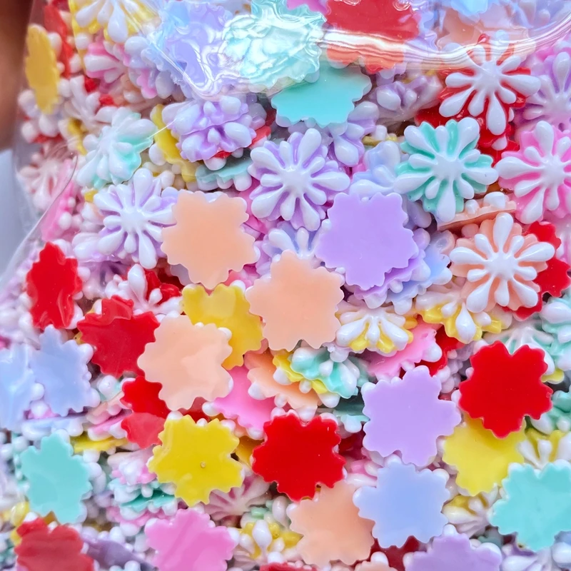 50Pcs New Cute Mini Christmas Snowflake Resin Figurine Crafts Flatback Cabochon Ornament Jewelry Making Hairwear Accessories