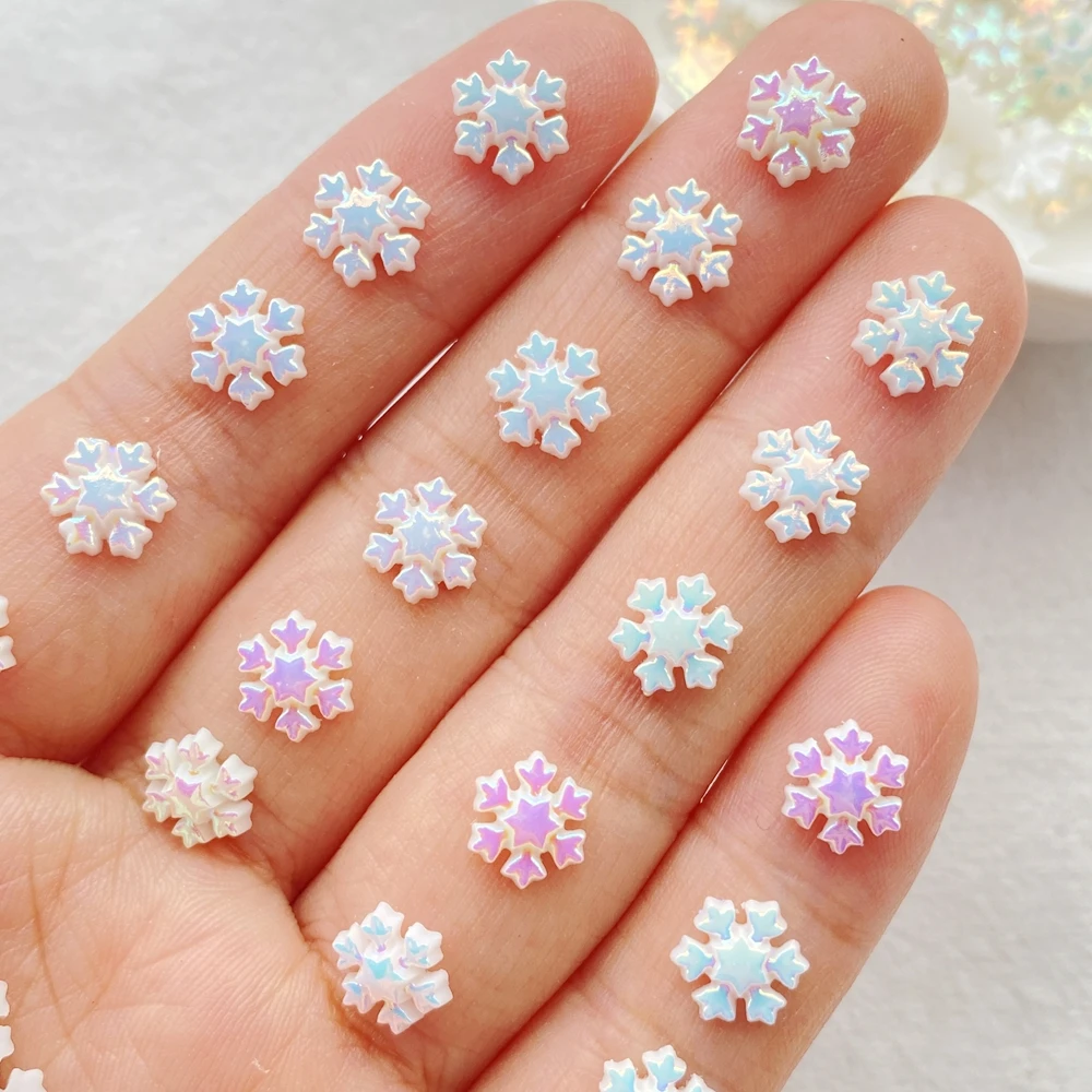 100Pcs Cute Resin Mini Christmas Snowflakes Flat Back Ornament Jewelry Making Manicure Hairwear Accessorie
