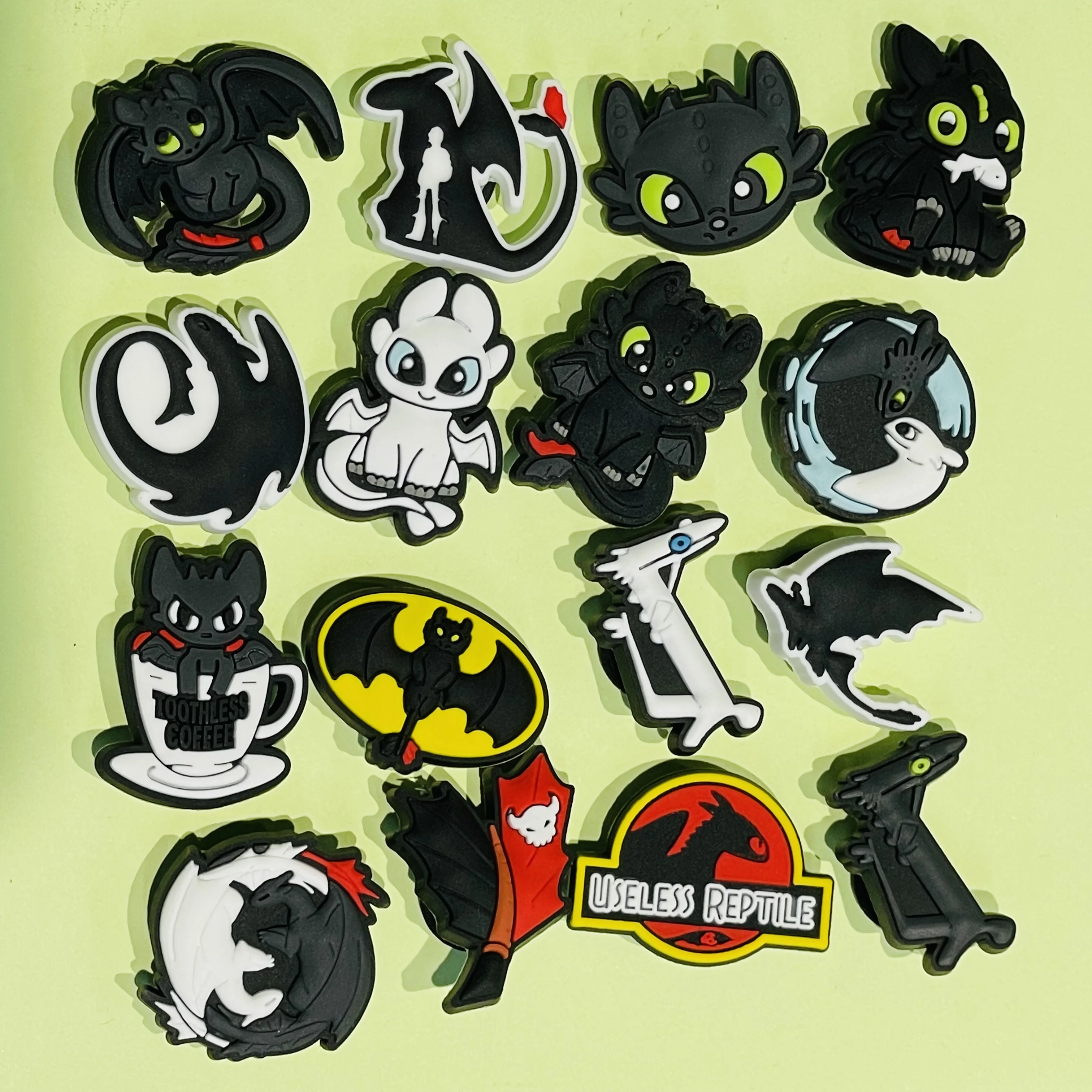 Hot Sale 16Pcs/set Dragon Toothless Cartoon PVC Garden Shoe Charms Shoes Decorations DIY Wristbands Kids Party Gift