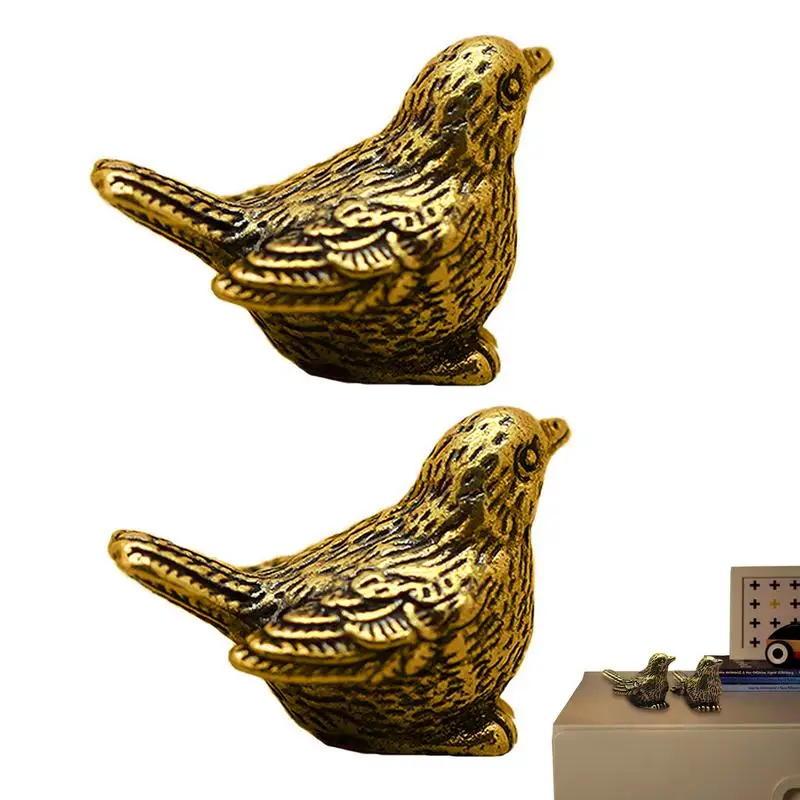 Brass Bird Figurines 2pcs Brass Sparrow Miniature Figurines Vintage Ornaments Copper Sparrow Statues Brass Bird Statue Retro