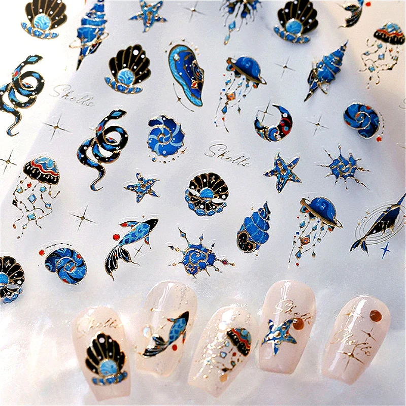 Koi Fish Star Moon Shell Snake Jellyfish Totem Gems Conch Starfish Y2K Dragon Phoenix Crane Deer Nail Art Sticker Manicure Decal