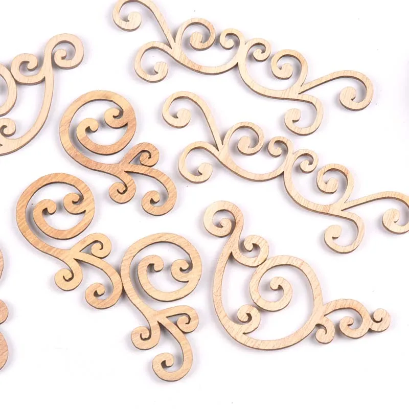 8Pcs Flower Pattern Wood Slices DIY Crafts Scrapbooking Home Decor Handmade Accessories Wood Lace Corner Arts Ornaments m1859