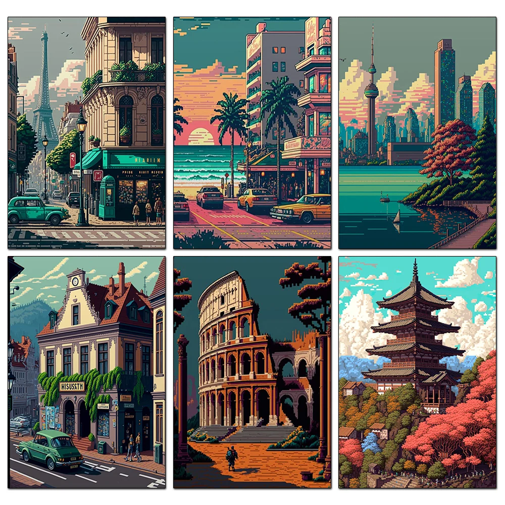 5D Diy Diamond Painting City Pixel Art Picture Full Diamond Mosaic Embroidery Cross Stitch Kit Rhinestone Inlay Home Decor Gift