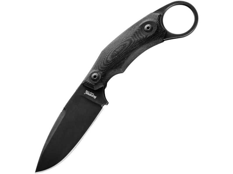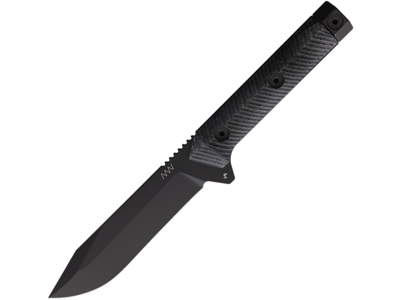 Acta Non Verba Knives M73 Kontos Fixed Blade Knife 5.25 in Sleipner Tool Steel Black Cerakote Drop Point Blade Black Sculpted Micarta Handle ANVM73002
