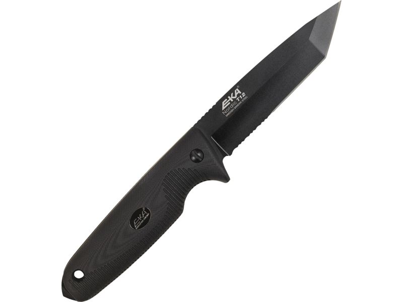EKA Nordic T12 Fixed Blade Knife 9in 4.25in Swedish Sandvik Steel Tanto Black G10 Handle 714402