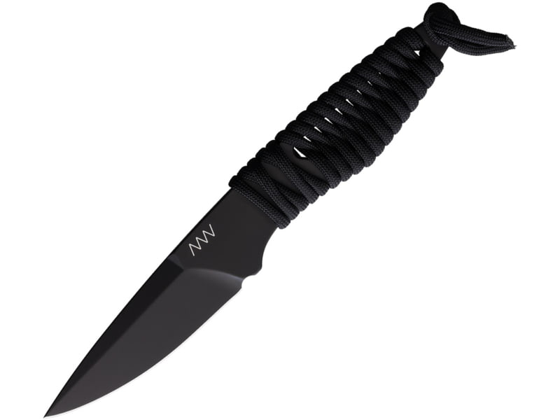 Acta Non Verba Knives P100 Fixed Blade Knife 3in Black Cerakote Sleipner Tool Steel Blade Black Cord Wrapped Handle Kydex Sheath ANVP100-037