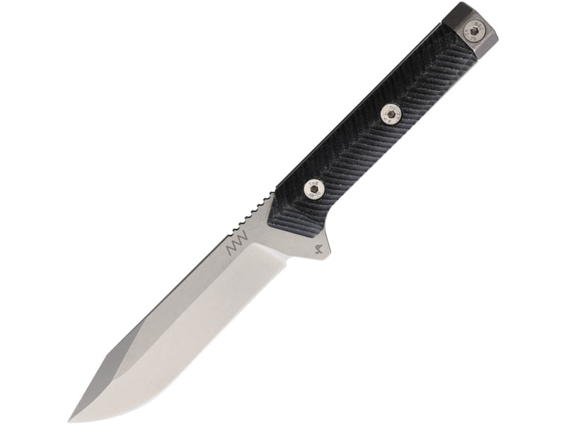Acta Non Verba Knives M73 Kontos Fixed Blade Knife 5.25 in Sleipner Tool Steel Stonewash Drop Point Blade Black Sculpted Micarta Handle ANVM73003