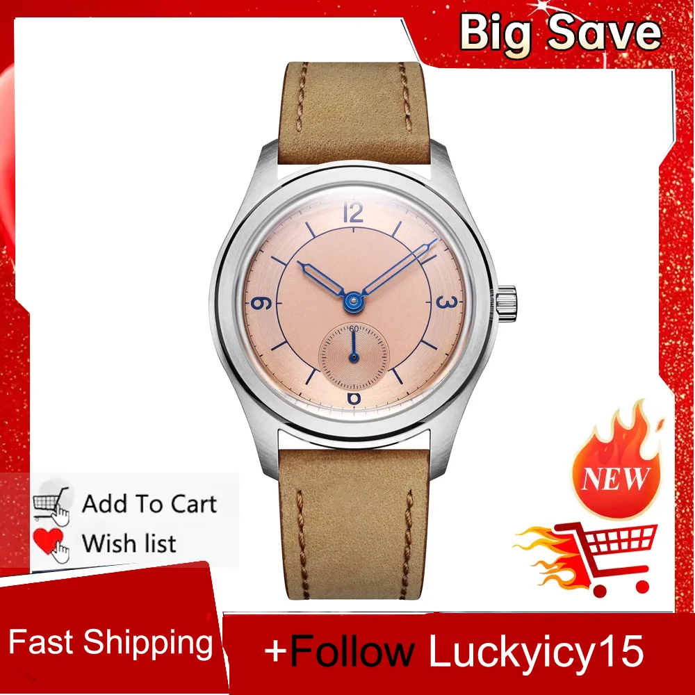 Fashion New 38mm Silver Case Pink Dial Mechanical Automatic Men Wristwatch relogios masculino Leather Strap Glass Back Cover  Read more