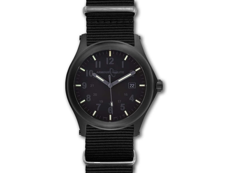 Armourlite Field Series AL145 Swiss Made Tritium Illuminated Watch with Shatterproof Armourglass Black Case Blackout Dial 42mm AL145. These Watches from the experts at ArmourLite feature a hardness rating of 6000 Vickers ensuring they'll hold up...  Read more