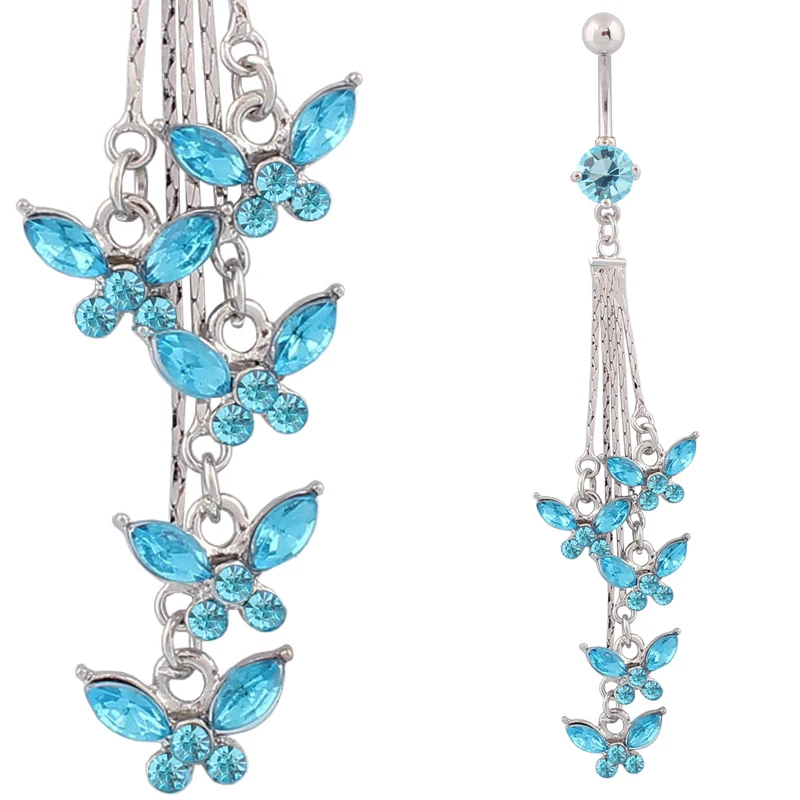 Crystal Tassel Butterfly Navel Bar Body Piercing Belly Button Ring Fashion Navel Ring 14G 316L Surgical Steel Bar Nickel-free