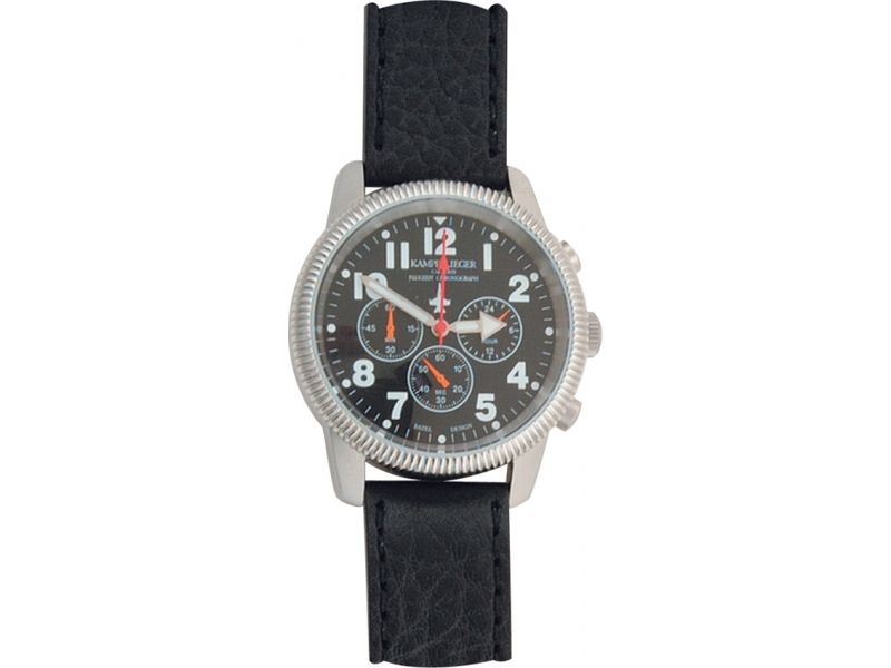 Miscellaneous German Airforce Chrono Watch M2681. Black face. Polished metal bezel. Hour second and minute timers. Start/stop push button and reset push button. Second hand. Japanese quartz movement. Black leather wrist band. Specifications for...  Read more