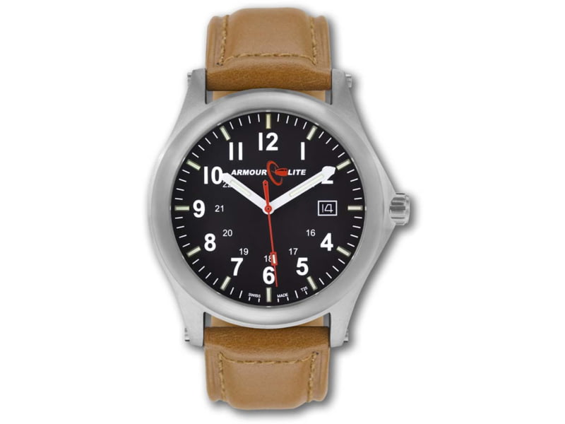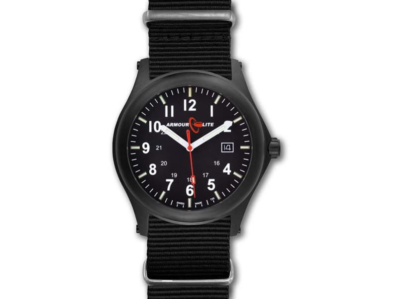Armourlite Field Series AL101 Swiss Made Tritium Illuminated Watch with Shatterproof Armourglass Raw Steel Case Black Dial 42mm AL101