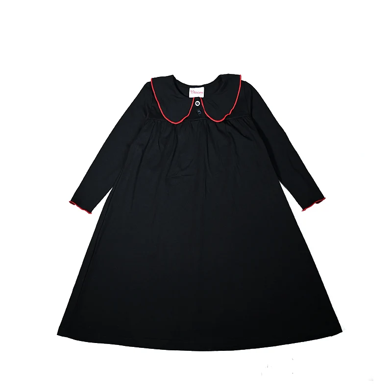 Girls long sleeve black set top and pant peter pan collar long nightgown teen casual long maxi dress contrast edge red stitching