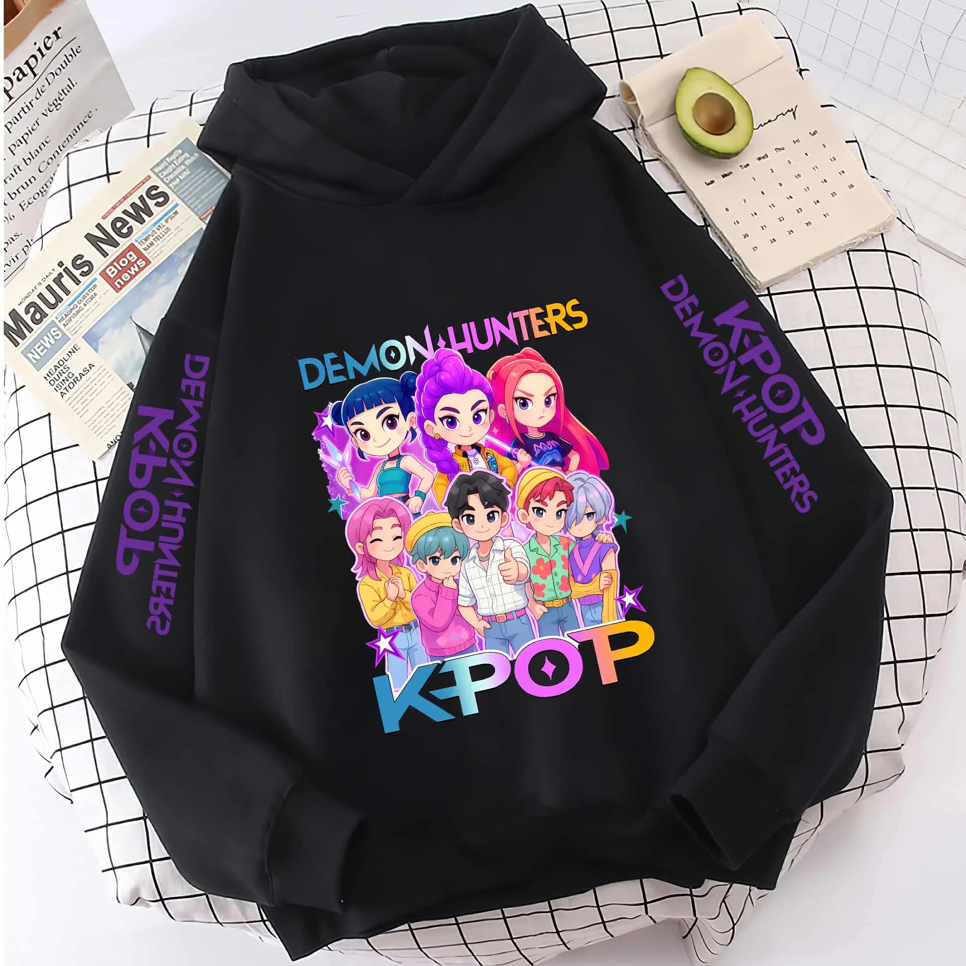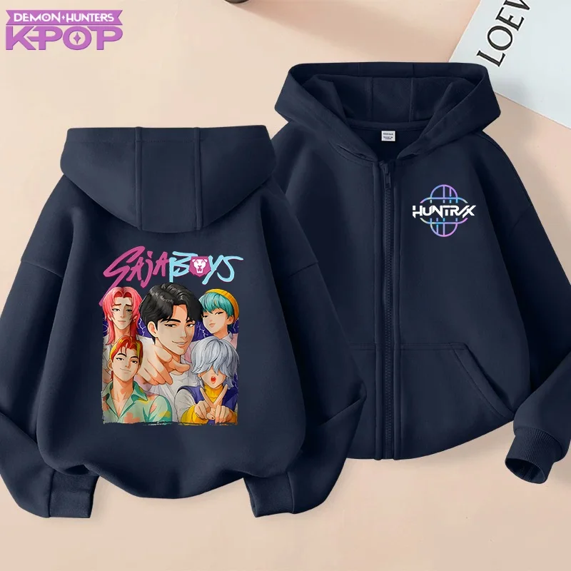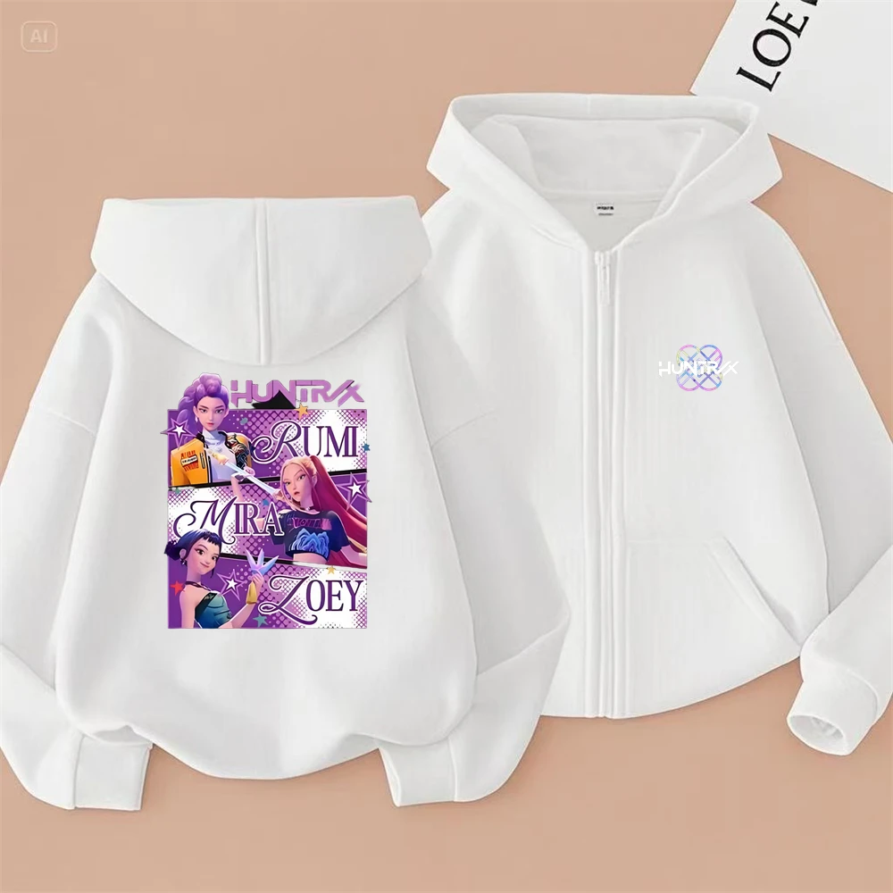 Children tops Hoodie KPop Demon Hunters Zipper style coat Boys black Girls pink Sweatshirt Clothing age 3-12 Children Suitable