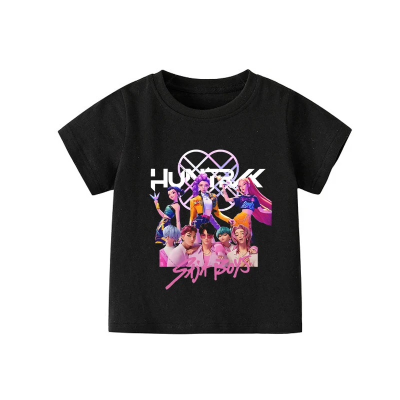 KPop Demon Hunters Top Casuals Short-Sleeved Clothes Child Summer Cotton T-shirt Cartoon Figure Clothing Infant Black White Tees