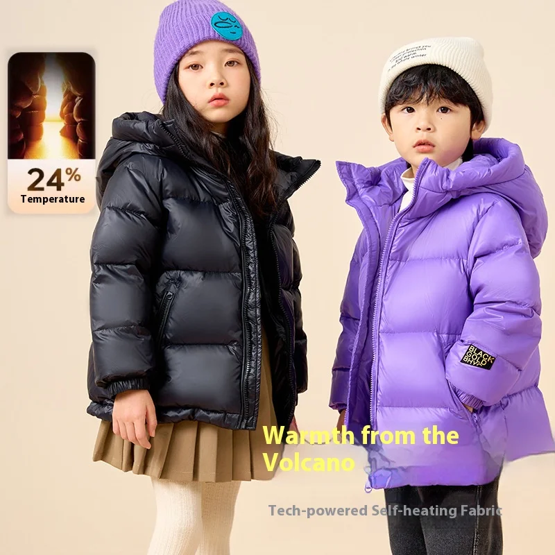 Children's Feather Silk New Winter Black Gold Label Family Matching Duck down Thickened down Jackets for Boys and Girls.