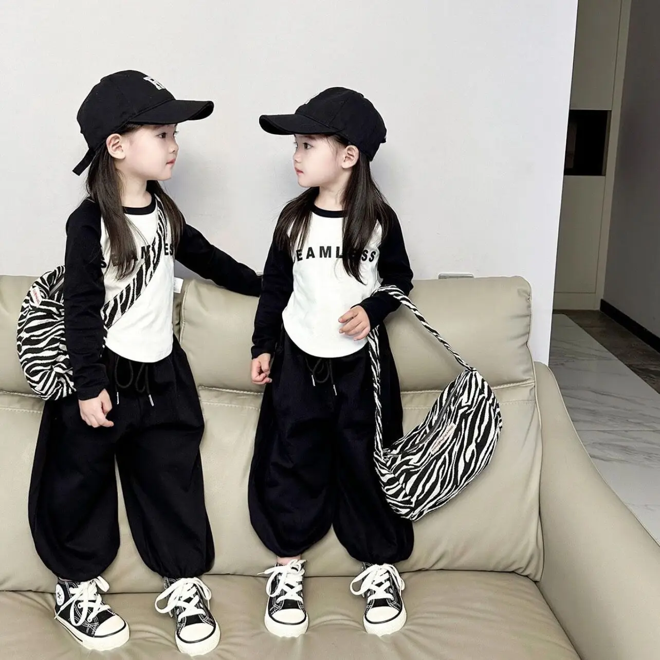 Children's Sets Spring Autumn Set 2025 New Boys Girls' Hoodie Black Pants Fashion Kids Sports Two piece Set