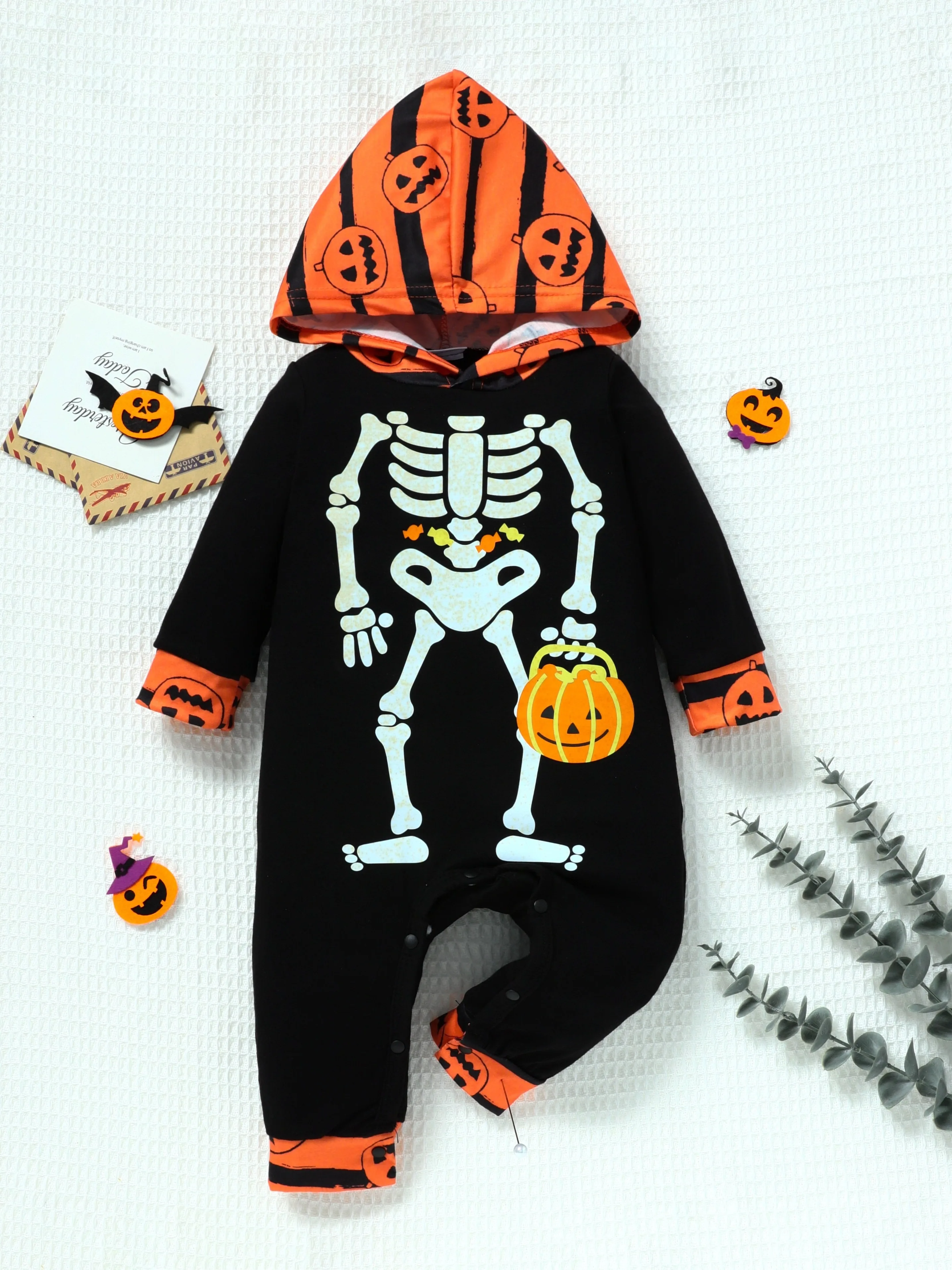 Boys' Black Hooded Romper Spring Autumn Seasonal Style Baby Clothing All-in-One Suit with Hat for Infants