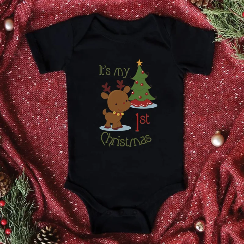 My First Christmas Baby Jumpsuit Baby Black Cotton Christmas Jumpsuit Unisex Christmas Bodysuits Merry Christmas Presents