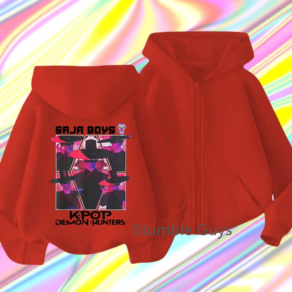 Children's Zipper Hoodie KPop Devil Hunter Top, Children 4-14 Years Old Coat, Fashion Black Clothing, Boys and Girls Hoodies,