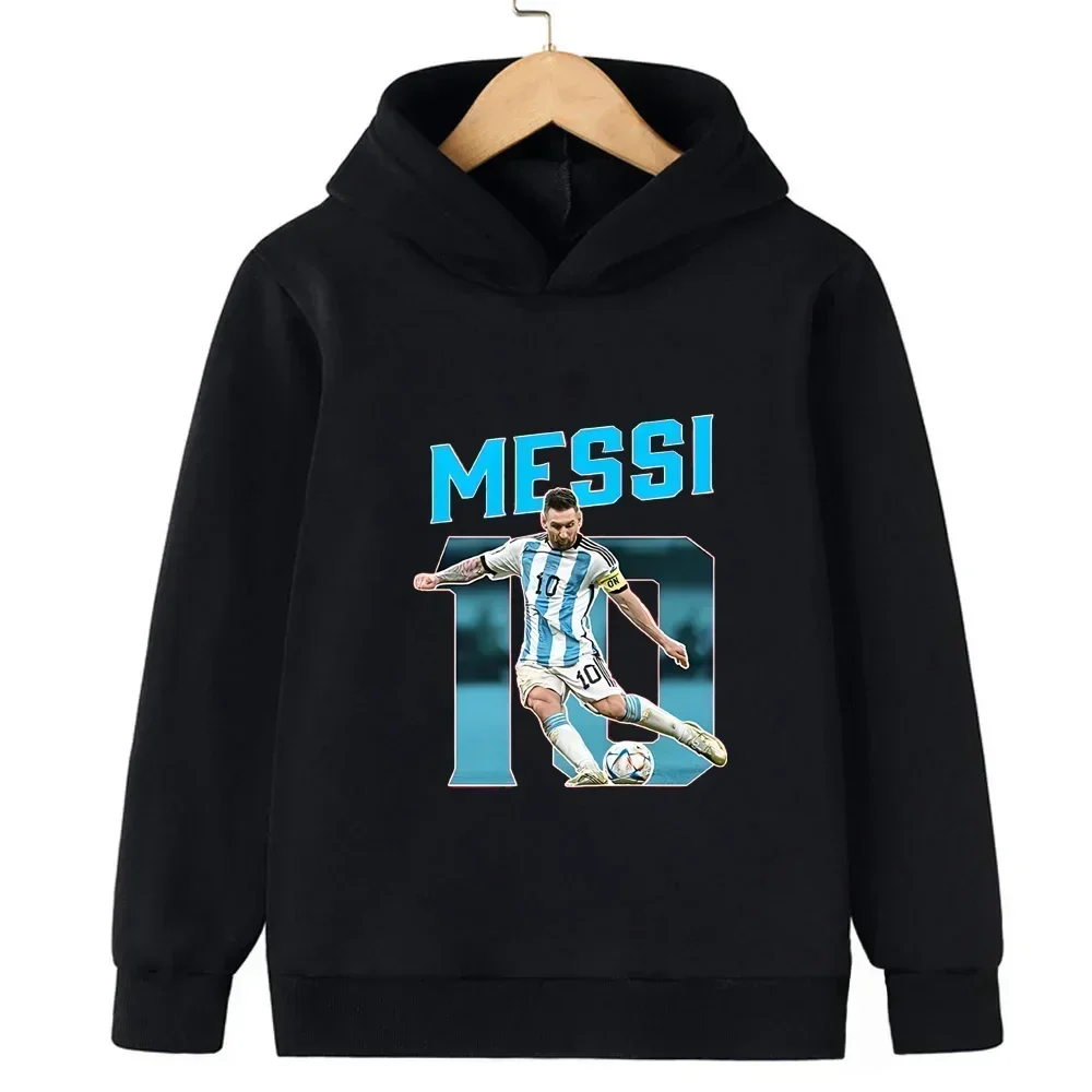 Messi Printed Children's Hooded Hoodie Plus Velvet Sweatshirt Casual Sportswear Pullover Black Top Boy and Girl Kid Baby Clothes