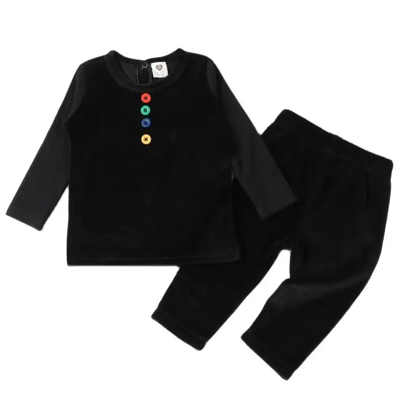 2pcs set baby clothes long top/pant children casual set colorful buttons kid clothes black velour long sleeves girl boys clothes  Read more