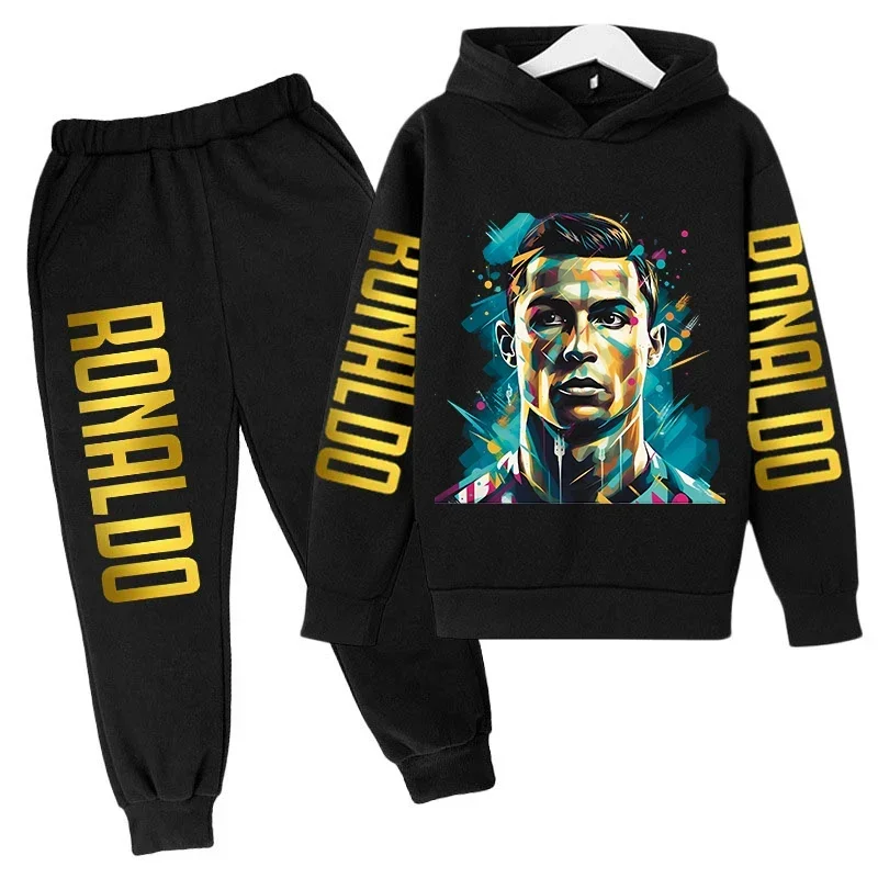 Spring and Autumn Hoodie Set Black Sweatshirt Pant Suit 2-piece Set Brand Printed Sports Kids Baby Boy Girl Children's Clothing
